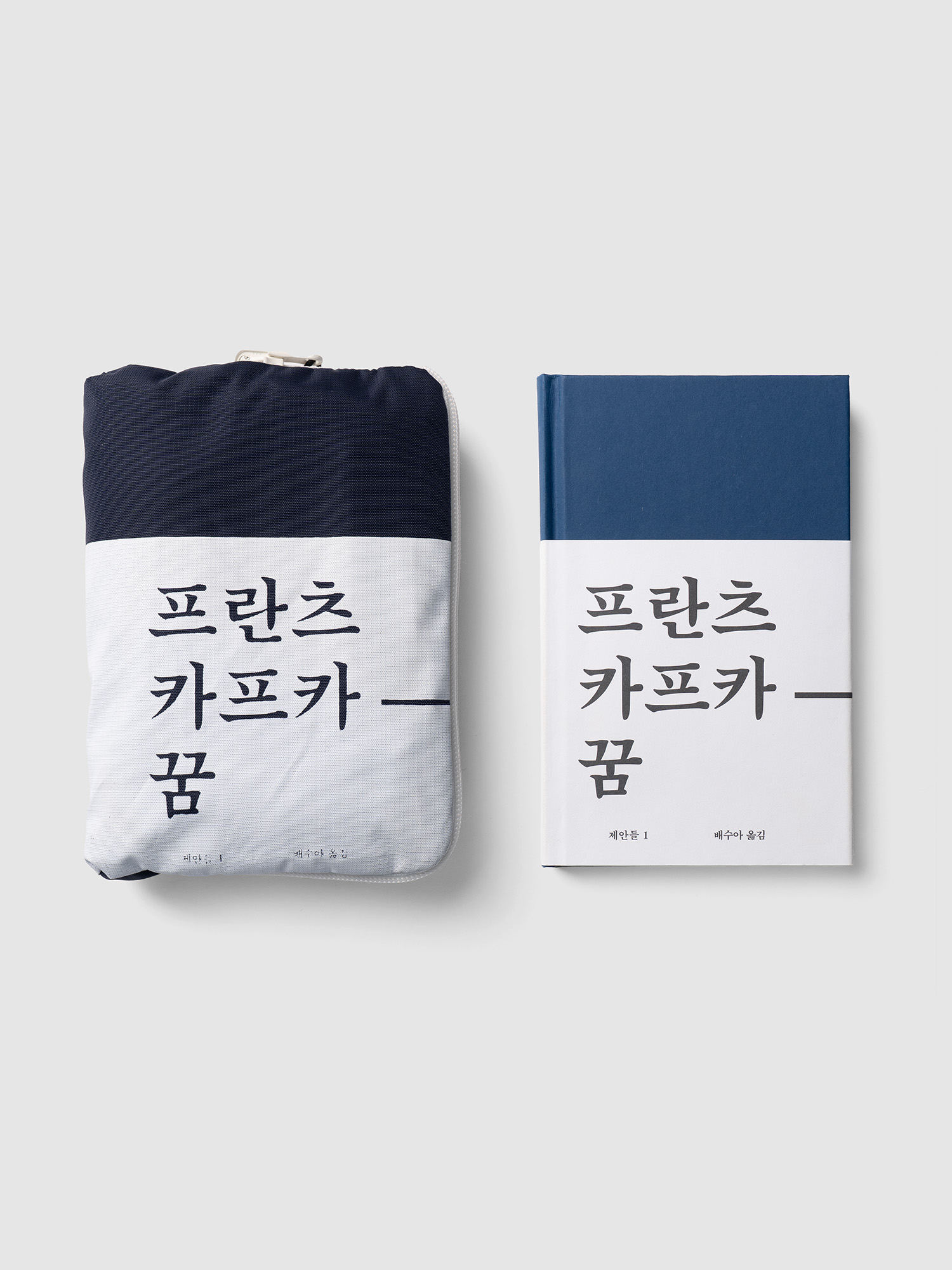 워크룸 문학 총서 ‘제안들’ 의 첫 번째 책 『꿈』과 가방입니다. 꿈의 가방은 책 표지를 닮은 파우치에 접어 넣을 수 있습니다. ‘제안들’의 영문 표기 ‘Propositions’의 약자를 그래픽으로 프린트하고 네이비 색상의 원단을 사용했습니다.
